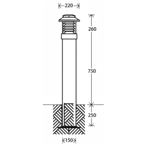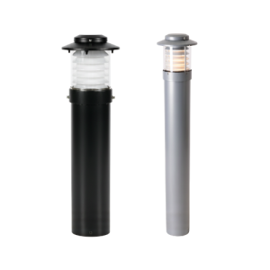 The post is baseplate mounted and the bollards are available with a curved domed cap and in Matt Black powdercoat finish. Ideal for pathway and walkway lighting.
