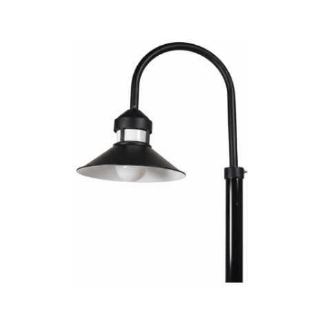 Area light, die cast aluminium head section, with heavy duty spun aluminium shade, opal polyethylene visor (Vandal resistant). The luminaire incorporates a top distributing light port that gives subtle tones to the top visor, whilst still giving good downward light component.